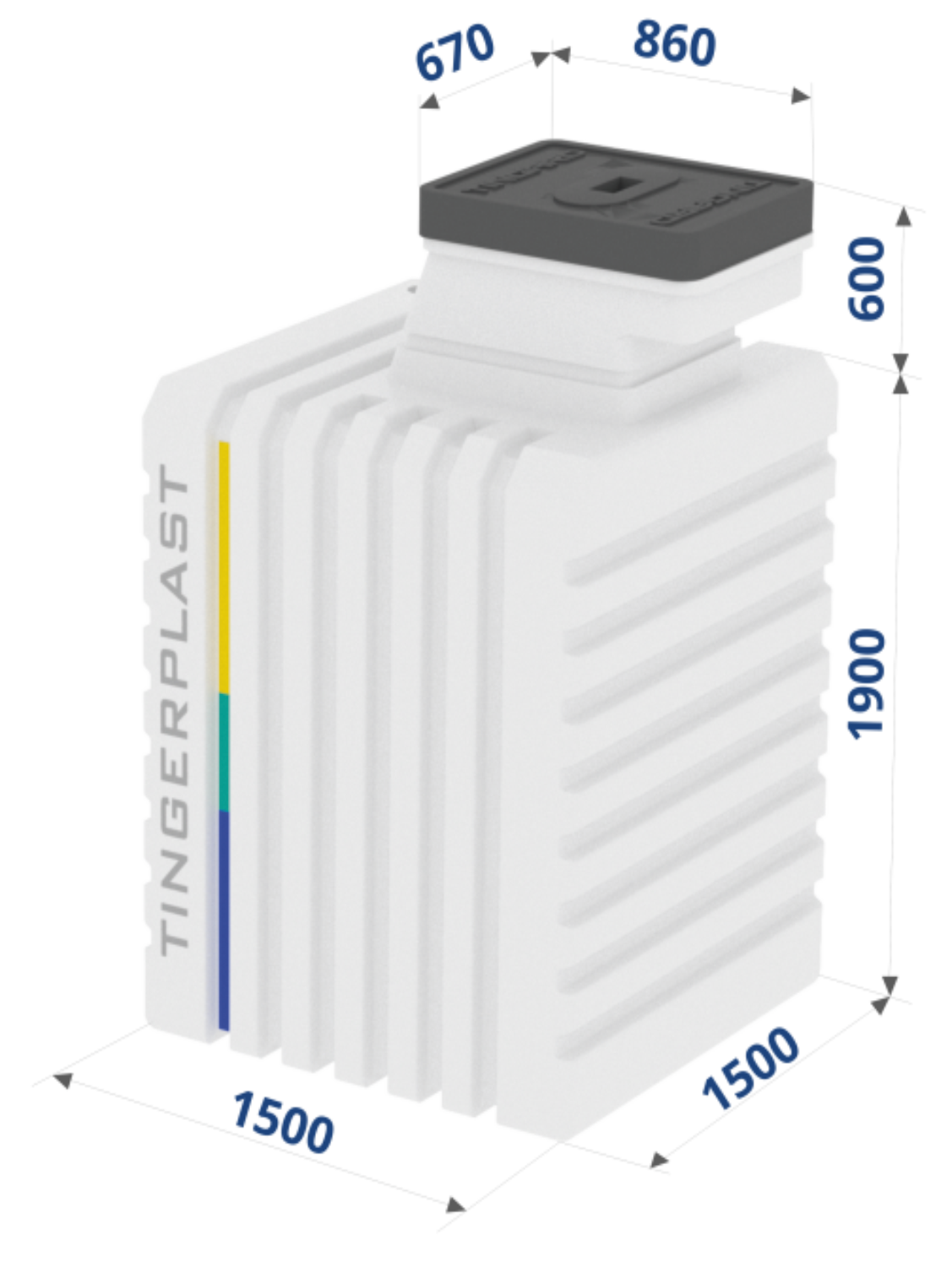 Размеры погреба: 1500 × 1500 × 2500 мм — отличное решение для участков с ограниченной площадью. При этом внутренний объём составляет 3,38 м³, что позволяет разместить до 152 банок и 8 мешков или ящиков с урожаем. Оптимально для хранения домашних заготовок, овощей, корнеплодов и бытовых запасов.