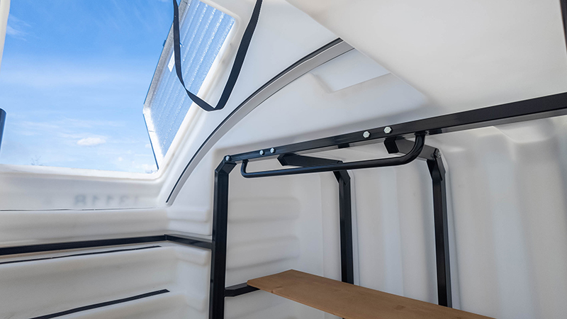 Дополнительную жёсткость обеспечивает металлический каркас, сваренный на роботизированной установке и встроенный по всему периметру погреба. Толщина стенок до 15 мм гарантирует устойчивость даже при сложных грунтовых условиях.