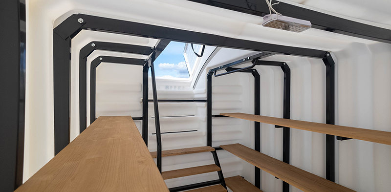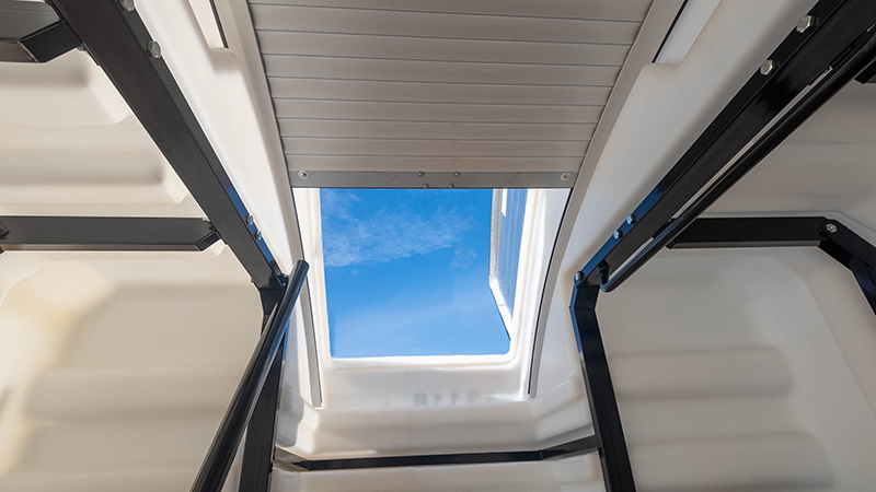 Главное отличие серии Prestige — это боковой вход, который в модели Prestige L имеет размеры 755 × 1015 мм. Широкий и удобный вход облегчает спуск и подъём, а также позволяет легко заносить внутрь габаритные предметы — ящики, мешки, корзины и т.д.