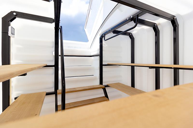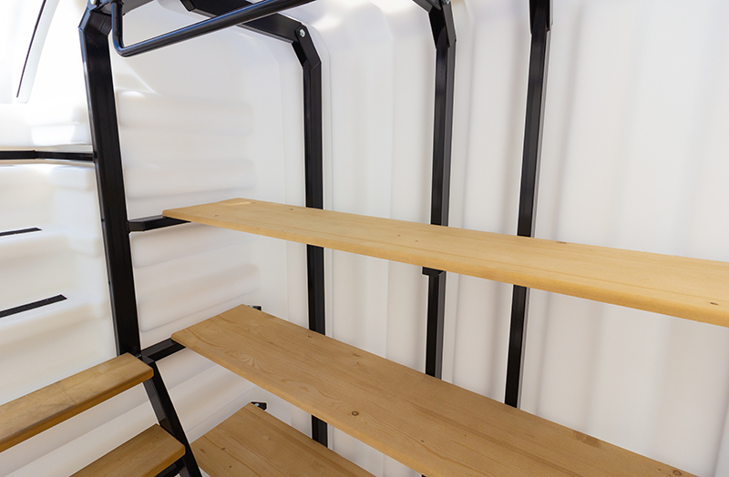 - Три уровня деревянных полок шириной 30 см, с антисептической обработкой