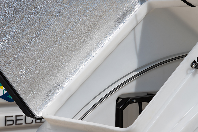 Крышка утеплена и снабжена интегрированным поручнем для надёжной фиксации. Также предусмотрены перила и антискользящее покрытие на верхних ступенях лестницы. Это делает использование погреба безопасным в любое время года.