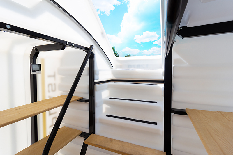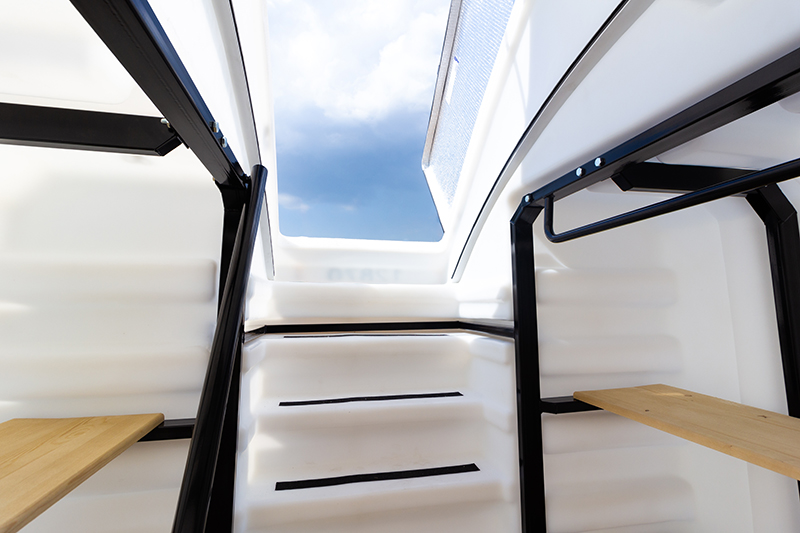 Внутри установлена комфортная металлическая лестница с деревянными ступенями, обеспечивающая надёжный и плавный спуск.