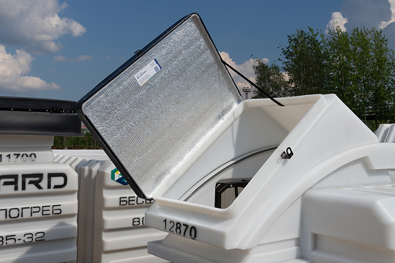 Корпус погреба изготовлен из первичного пищевого полиэтилена методом ротационного формования. В результате получается цельнолитое герметичное изделие без швов и соединений. Такая технология исключает проникновение влаги и обеспечивает полную защиту от грунтовых вод.